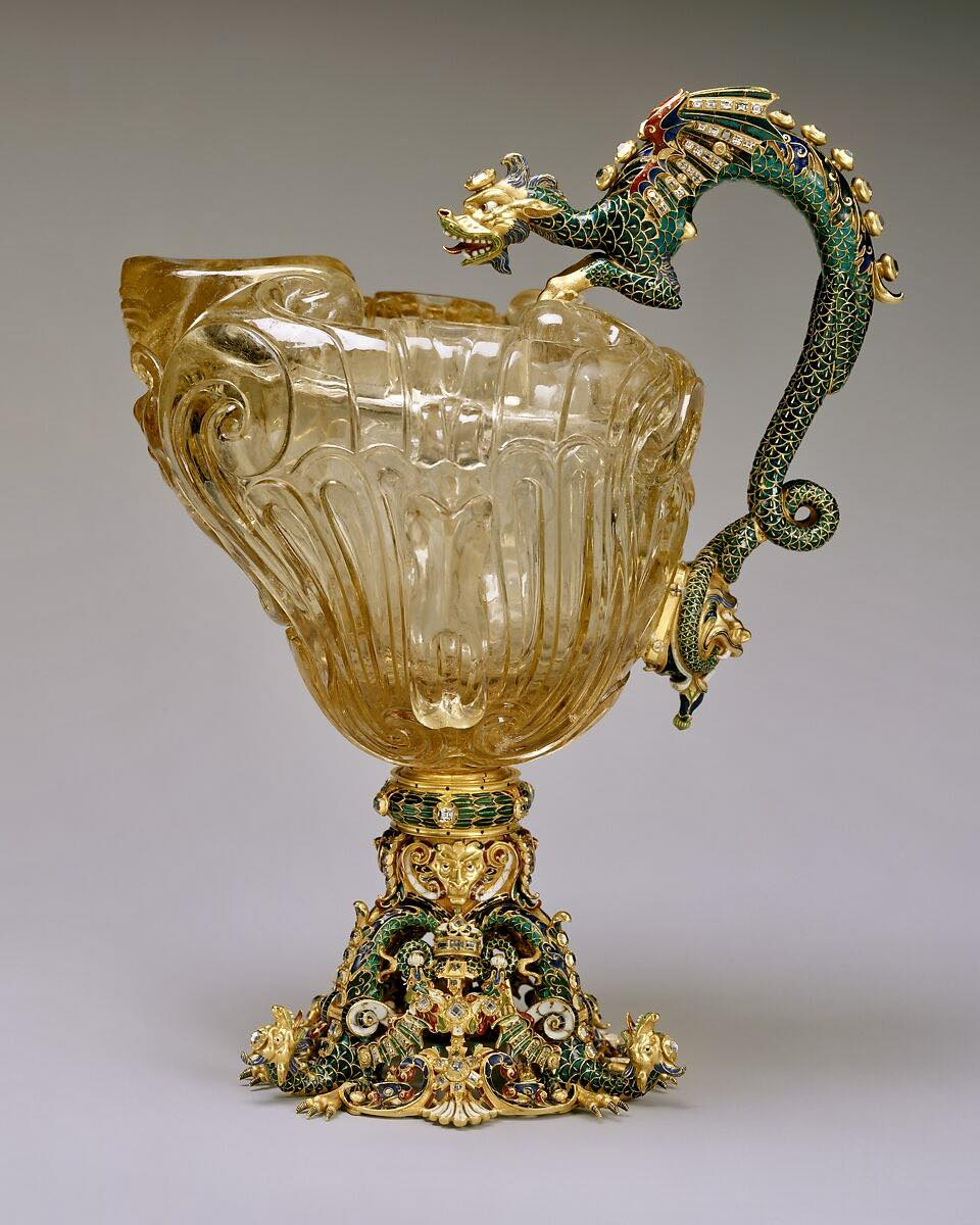 Carved rock crystal, enamelled gold mounts, precious stones. Metropolitan Museum, New York.