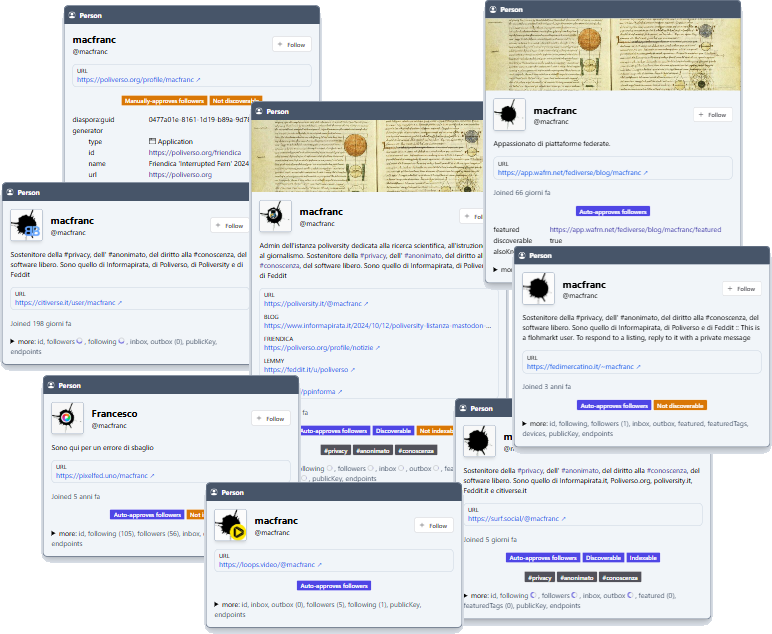 È possibile inserire qualsiasi URL web rilevabile da ActivityPub o handle fediverse e BrowserPub rileverà e visualizzerà l'AP sottostante