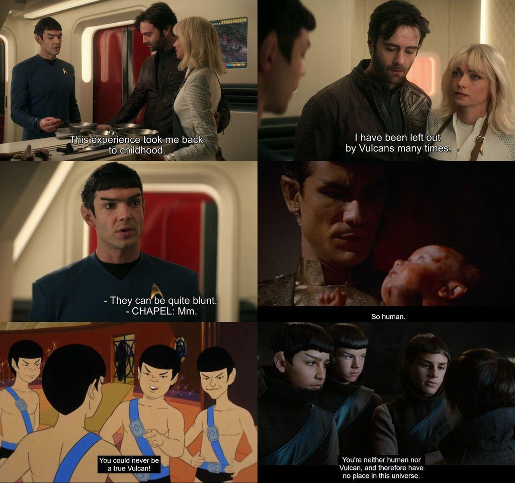 When Spock said that he wad been left out by Vulans in his childhood in #StarTrekSNW's "Four-and-a-Half Vulcans"⬆️⬅️, it immediately reminded me of these moments in "Star Trek V: The Final Frontier"➡️, #StarTrekTAS' "Yesteryear"↙️ and "Star Trek" (`09) ↘️.