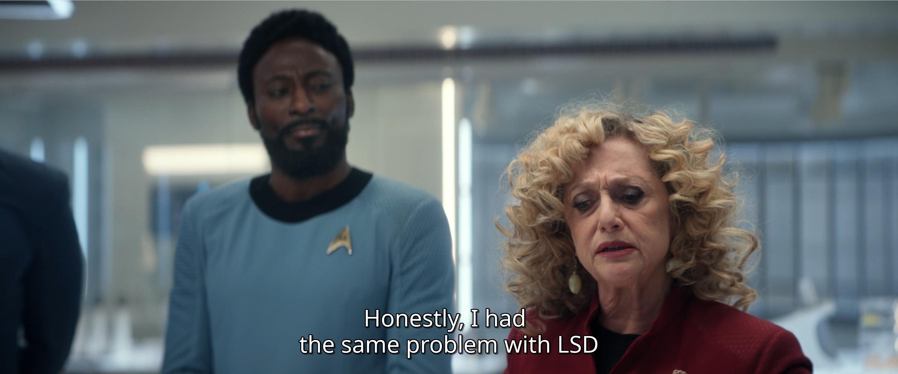 That LSD (LDS? 😜) really must have been big in the 60's (...and 90's and last July), according to Kirk in "Star Trek IV: The Voyage Home"➡️ and Pelia in #StarTrekSNW's "Four-and-a-Half Vulcans"⬅️. :-)