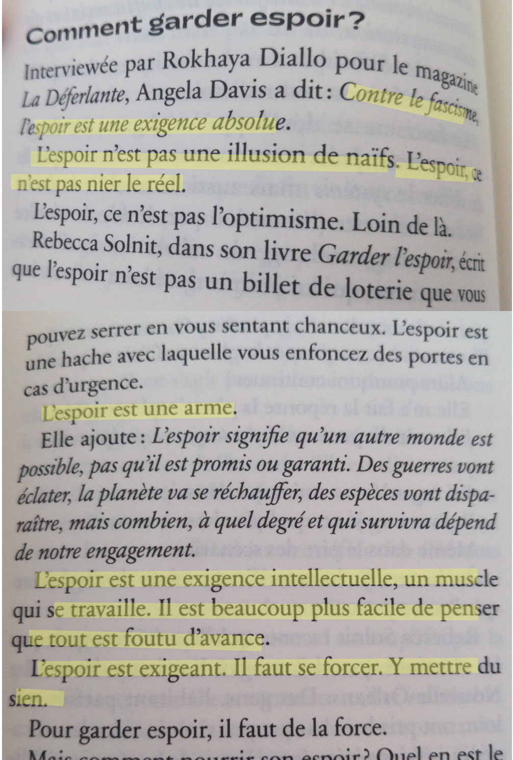Un drôle de livre carnet extime, reccueil de conseil à destination de ses enfants, commentaires d'actualité, un peu tout à la fois. Avec quelques idées vraiment fortes comme l'extrait ci-dessous sur l'espoir par temps de fascisme, et juste après un truc hilarant, sur les enfants, enfin surtout quand on est parent bien sûr; Bref du lourd et du léger, un peu comme la vie quoi.