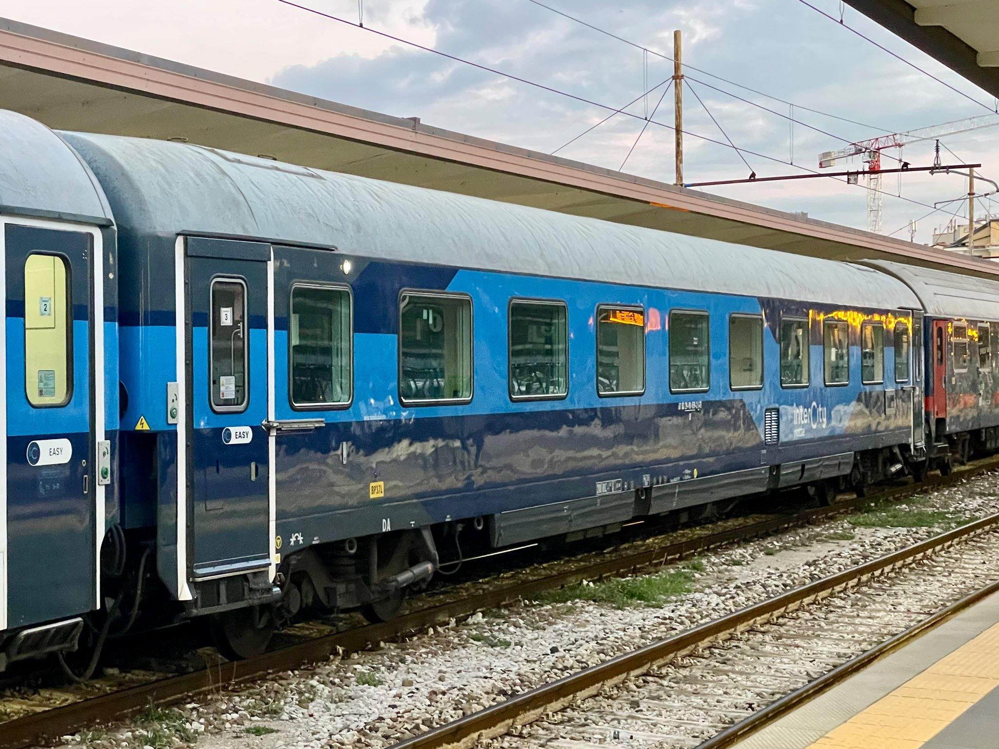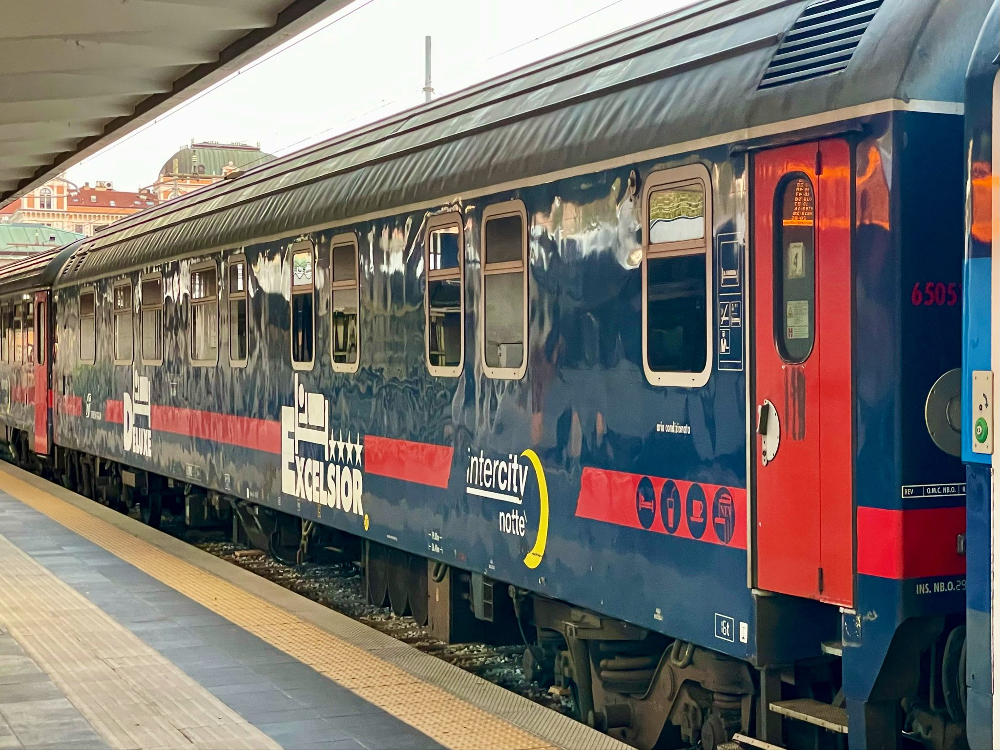 With #FS 🇮🇹 #Trenitallia #InterCity Notte #ICN to #Trieste. The train originates in #Roma Termini and is currently one of the few Italian night trains that include a #T3 #T3S sleeper. These cars, rebuilt from the T2s type, feature a number of cabins with en-suite facilities.
