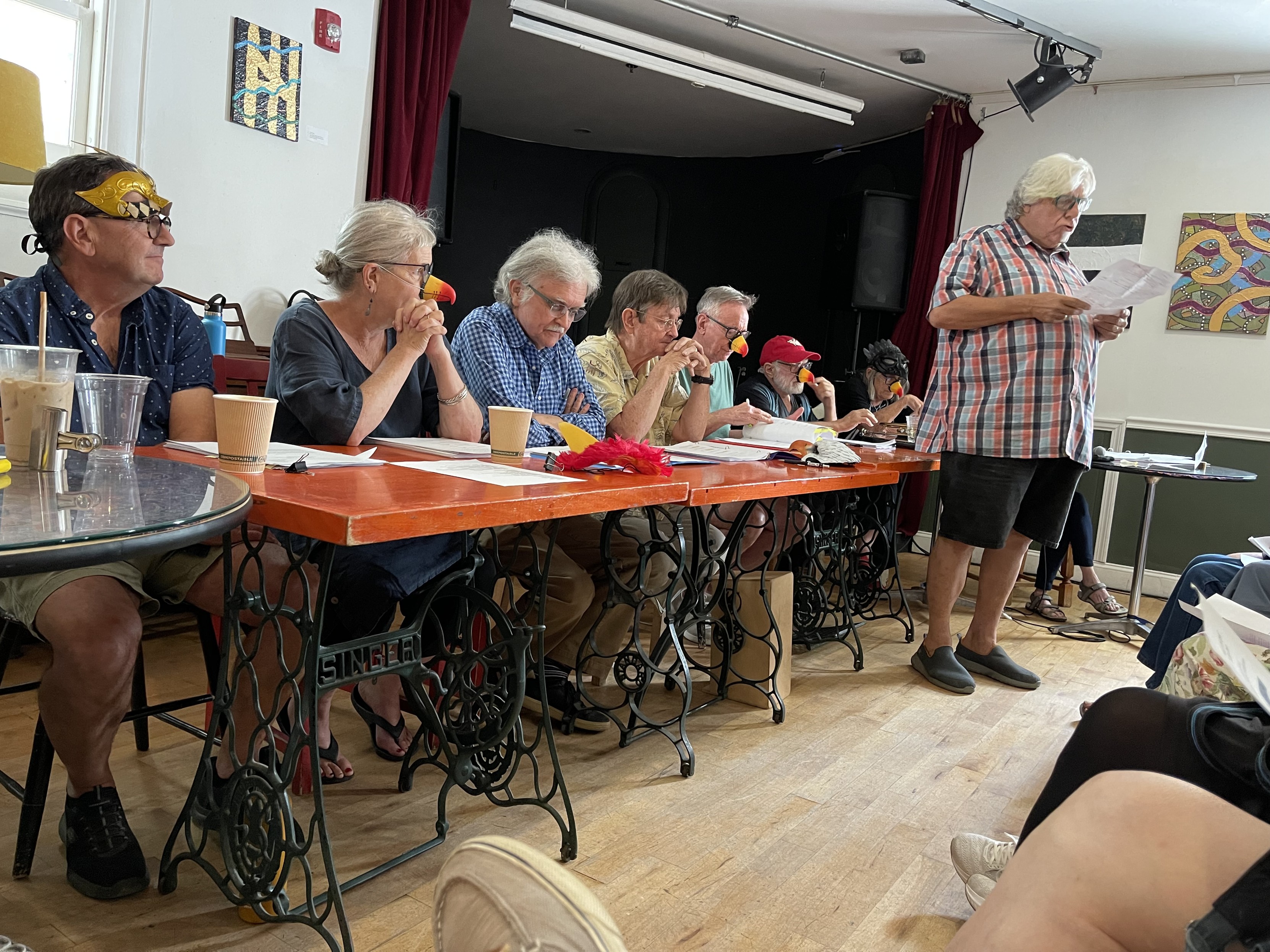 The reading is free and open to the public. The reading features original songs by Jane Burgess Harcourt, sung by Suzanne Boucher and accompanied by Peter Hoffman on guitar. This version mashes up the classic #Greek comedy with “The #Birds” by Hitchcock and songs inspired by the ’60s band the #Byrds. In rhymed #tetrameter couplets, the brisk verse punches up its wordplay. This adaptation uses the masks and …